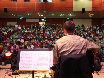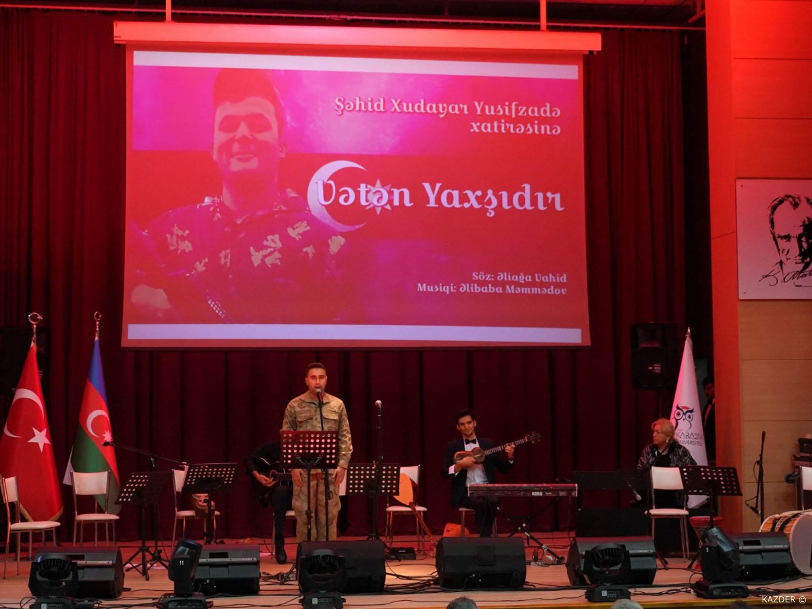 Aslında hakkınızı hukukunuzu bir başkasının koruyamadığını özellikle büyük ülkelerin emperyal güçlerin bizler hakkında Türkler hakkında Müslüman Coğrafyası hakkında çokta olumlu düşünceler içerisinde olmadığını, geçmiş süreç içerisinde çok yakinen takip ettik. Karabağ’ın başına gelen Saraybosna’da, Bosna Hersek’te, Filistin’de başımıza geldi. Yıllarca gördük hep aleyhimize gelişen süreçler bunlar, hakkımızı hukukumuzu savunduğunu düşündüğümüz devletler statükonun devamı ile Karabağ bölgesine dünyanın çeşitli noktalarından gelecek Ermenilerle bir Ermeni Yurdu haline getirilmesi sürecinin içindeydiler. Kahraman Azerbaycan askerleri ortaya koydukları irade ile Türkiye Cumhuriyetinin ortaya koyduğu destekle bugünleri gördük. Ulu Önder Mustafa Kemal Atatürk’ün çok güzel bir veciz sözü var “Azerbaycan’ın Sevinci Sevincimiz, Kederi Kederimizdir”. Bizler aslında yıllardır aynı düşüncede olan Tek Millet İki Devletiz, Azerbaycan ordusunun teknik altyapısının belli bir noktaya gelmiş olması ve Türkiye Cumhuriyetinin vermiş olduğu desteklerle ve kurmay zekanın sayesinde şükürler olsun ki Karabağ Zaferini kazanmış olduk. Kardeşlerimizin bu zaferini yürekten kutluyorum, Karabağ bir Türk yurdudur. 8 Kasım Karabağ Zaferini yürekten kutluyoruz, programın hazırlanmasında emeği geçen bütün arkadaşlarımıza huzurlarınızda teşekkür ediyorum. Bütün şehitlerimize, Karabağ şehitlerimize ve ülkemizdeki tüm şehitlerimizi rahmet ve minnetle yad ediyor, gazilerimize acil şifalar diliyorum. Üniversitemize, Güzel Sanatlar Genel Müdürlüğümüz ve diğer kuruluşlarımıza teşekkür ediyor, sevgi ve saygılarımı sunuyorum” diye konuştu.
