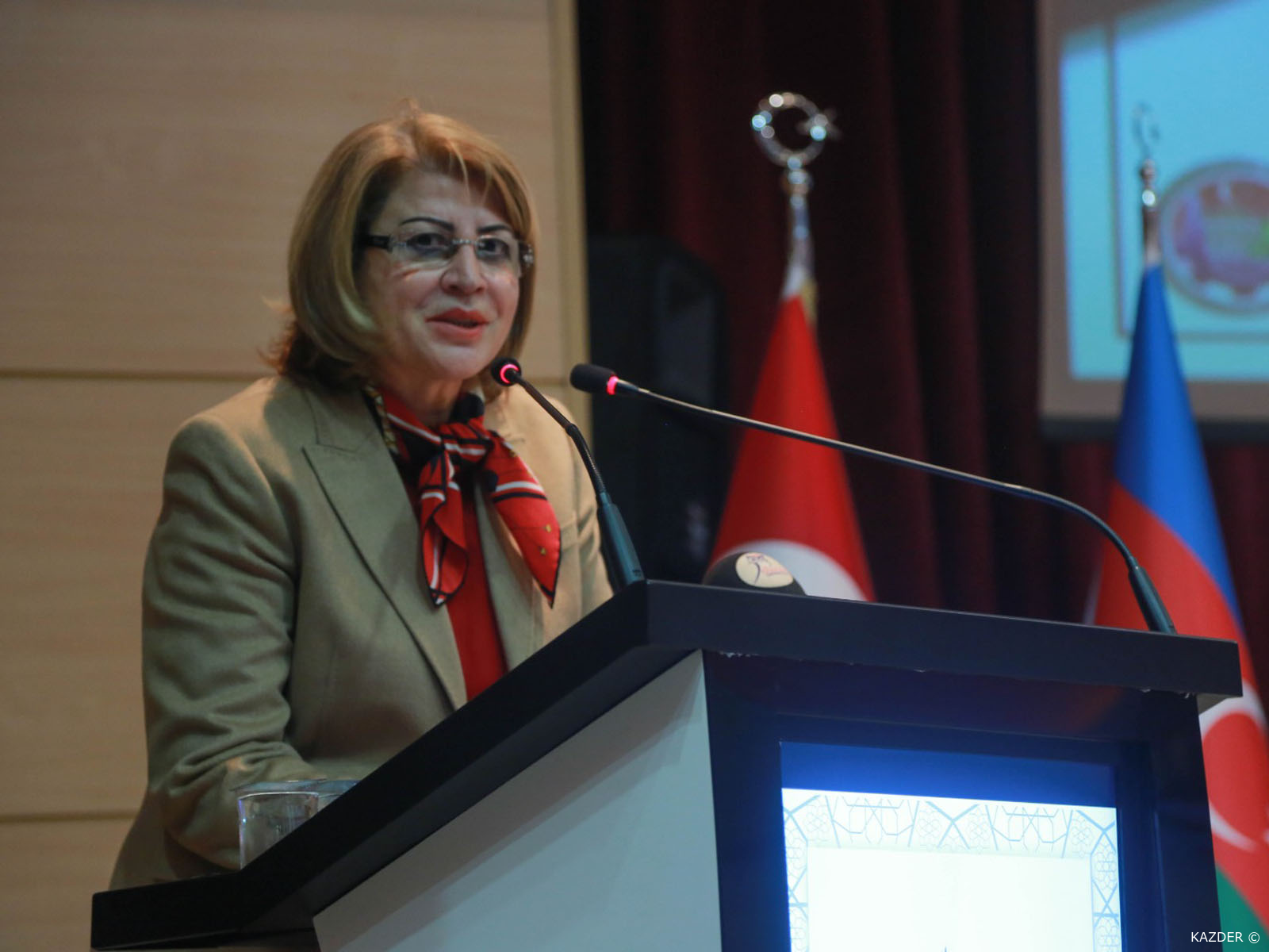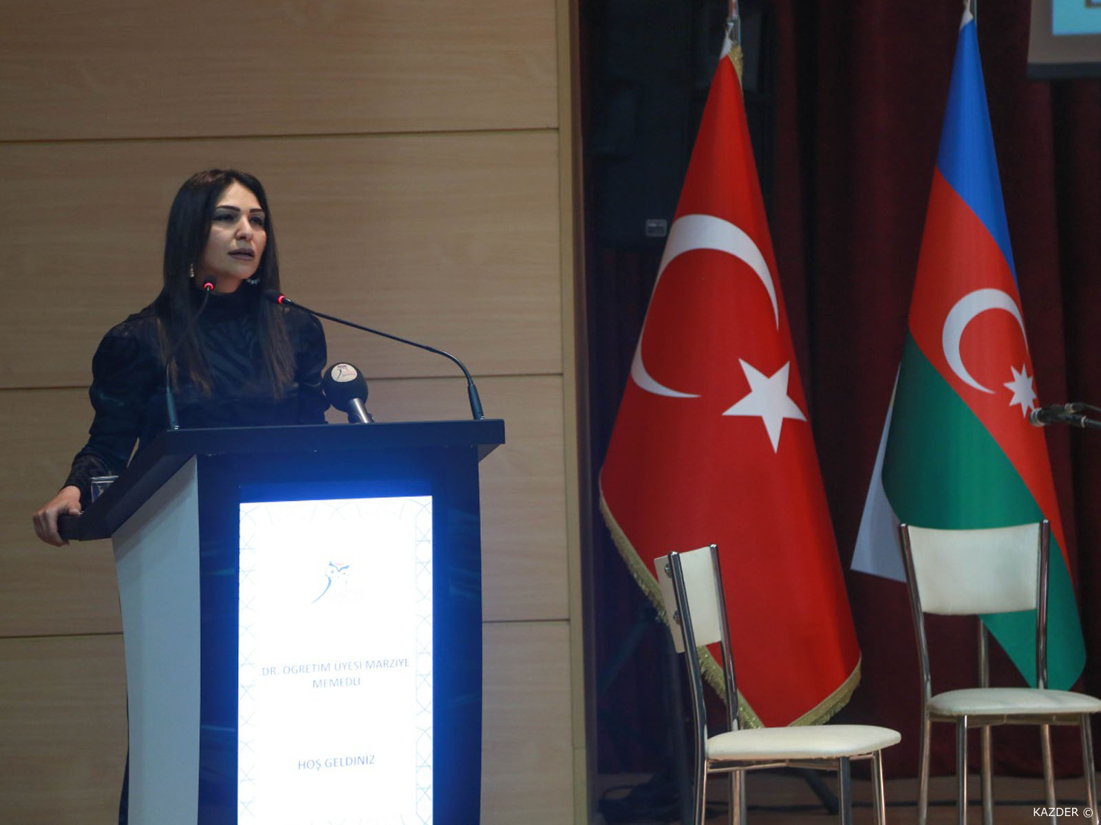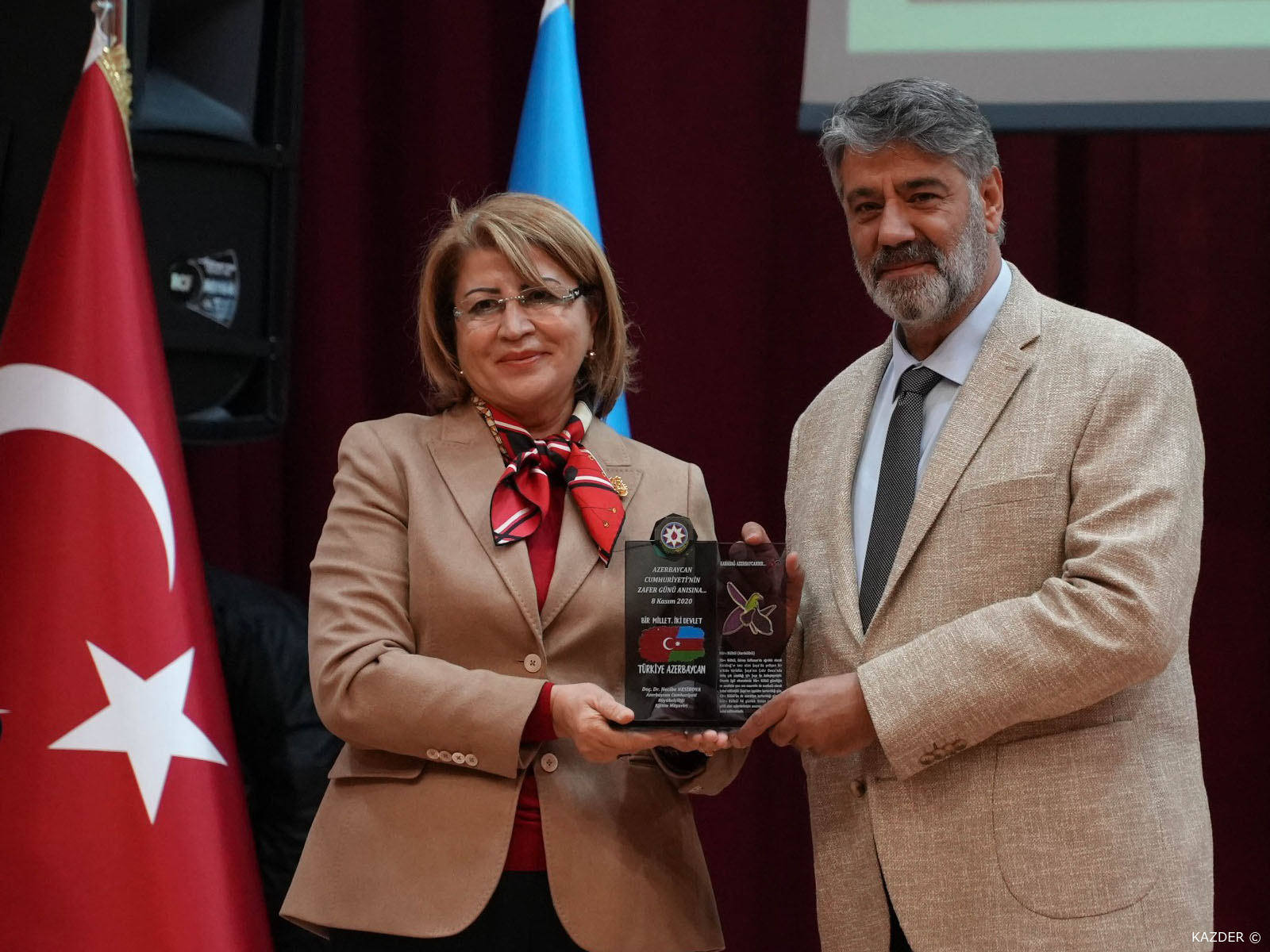 Azerbaycan Cumhuriyeti Eğitim Müsteşarı Doç. Dr. Necibe Nesimova Türk dünyasının zaferi saydığım böyle bir muhteşem günde beraber olmaktan mutluluk duyduğunu ifade ederek: "Bizim şairimizin dediği gibi Azerbaycan bir gözdür, Karabağ ise onun bebeğidir. Şairin bu büyük, sanatsal ifadesinde betimlediği gibi Azerbaycan'ın bu güzel mekanı için gerçekten de göz bebeğimiz gibi hayati önem taşımaktadır. Çünkü medeniyetimizin beşiği olan Karabağ, birçok Azerbaycan, devlet ve bilim adamının söz ustasının müzisyeninin, mimarının, ressamın vatanıdır. Burada birçok değerli şahsiyet yetişmiş ve yetişen bu şahsiyetler daha sonra bizim ülkemizin medeniyetinin oluşmasında müstesna rol oynamıştır. Onların sayesinde, Azerbaycan medeniyetinin çeşitli alanında dünya mirası konumunda yer alan şaheserler ortaya çıkmıştır. Aynı zamanda Karabağ muhteşem dini mimarisi, benzersizliği ve özgünlüğüyle de tanınmaktadır. Sayın Cumhurbaşkanımız ve ulusal liderimiz Haydar Aliyev´in sözleriyle "Karabağ Azerbaycan'dır ve Azerbaycan Karabağ olmadan yaşayamaz." Azerbaycan ordusu, topraklarını kurtararak halkımızın otuz yıllık hasretine son verdi. Savaşın başından sonuna kadar psikolojik üstünlüğü elinde tutan Sayın Cumhurbaşkanımız, Azerbaycan halkını sevince boğan müjdeli haberlerini kırk dört gün tekrarladı. Rusya'nın arabuluculuğuyla Azerbaycan ve ile Ermenistan arasında 10 Kasım 2020´de imzalanan bildiriyle sona erdirilen süreç Azerbaycan tarafında zaferle, Ermenistan tarafında ise ciddi ölçüde hezimet olarak değerlendirdi. Bu zaferi bize armağan eden Sayın Cumhurbaşkanımız, Başkomutan İlham Aliyev başta olmak üzere Azerbaycan ordusuna teşekkür ediyorum. Kanlarıyla, canlarıyla, bu toprakları işgalden kurtaran Vatanının bölünmez bütünlüğü için canlarını seve seve feda eden aziz şehitlerimizi buradan minnetle, rahmetle anıyorum. Onların karşısında baş eğiyorum ve kahraman gazilerimize ve tedavi gören gazilerimize acil şifalar diliyorum. Şair ne güzel demiş. Bayrakları bayrak yapan üstündeki kandır, Toprak eğer uğrunda ölen varsa vatandır. Bir daha 8 Kasım Karabağ Zaferi dolayısıyla hepinizi yürekten tebrik ediyorum. Zaferimiz daim olsun." dedi.